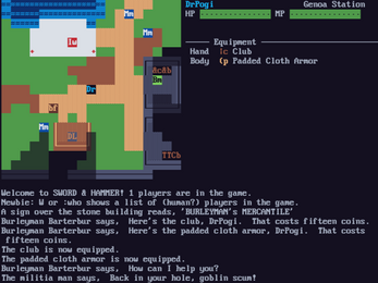 S&H is a text based game where the world is expressed with both a visual map grid and descriptive text. If you have played a rogue- or MUD-like game, you will find familiar elements.